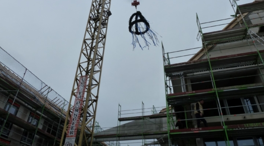 Am 05.02.2017 wurde an der Seniorenwohnanlage Bauschheim Richtfest gefeiert. Im Sommer können die Arbeiten an den Außenanlagen beginnen. Bis zum Herbst werden unser Hof Morgenrot und Hof Abendrot fertiggestellt sein.
