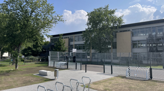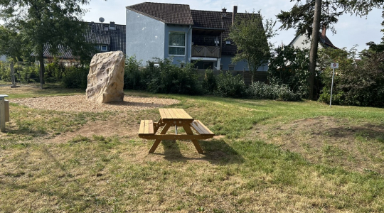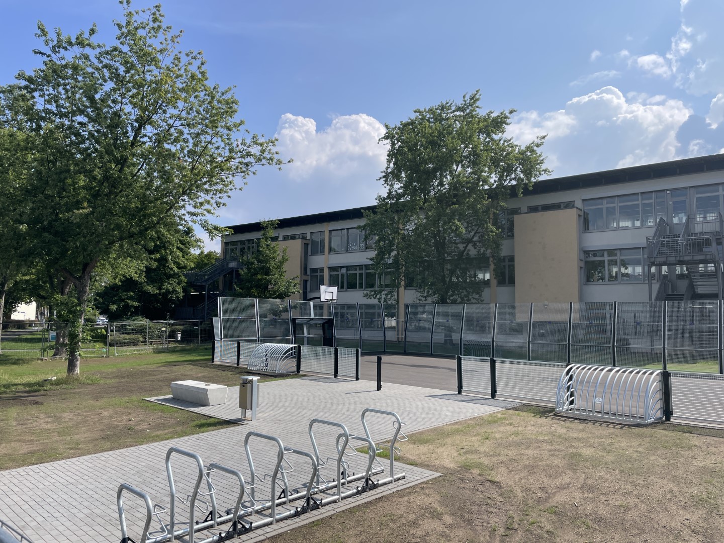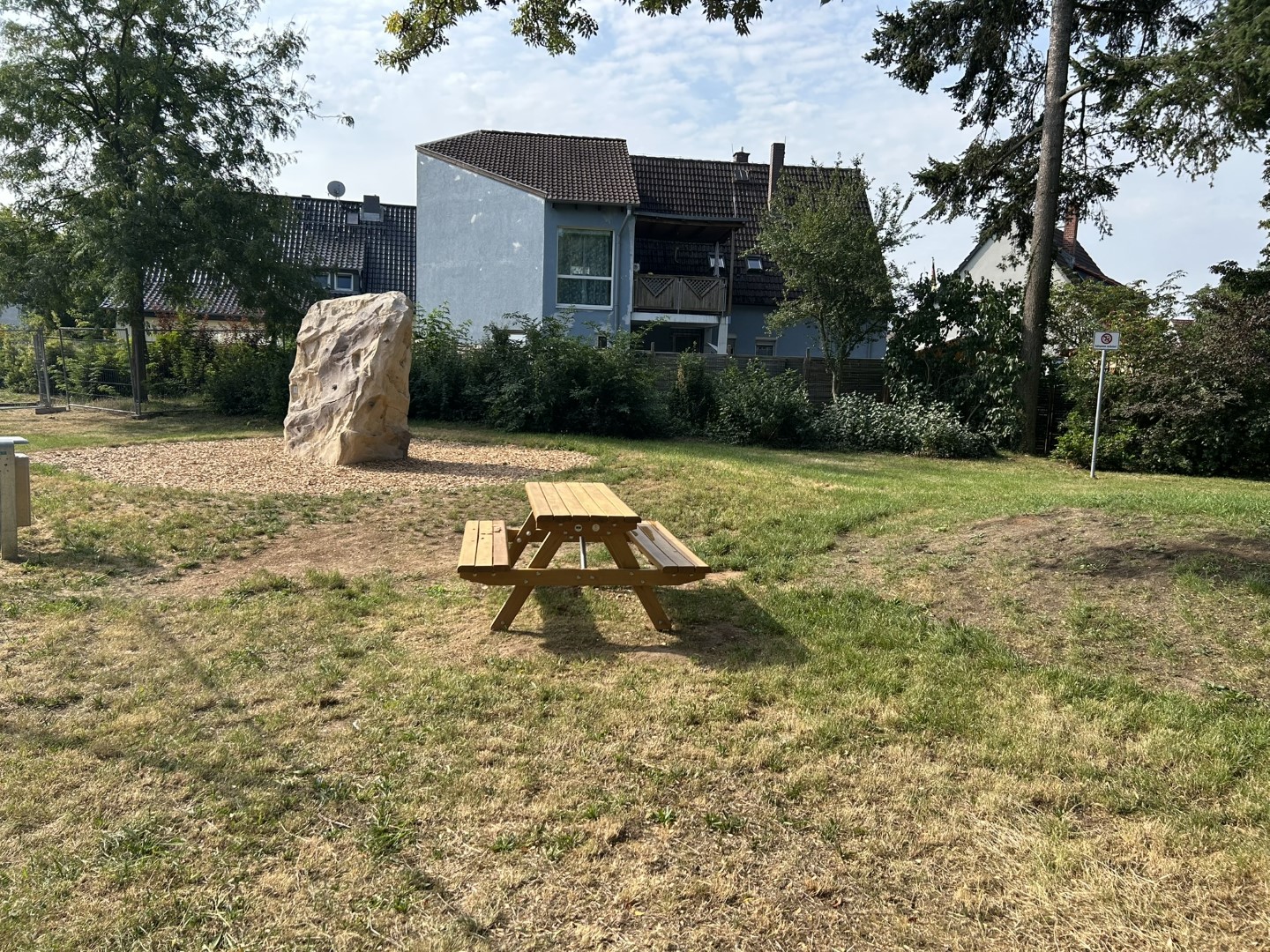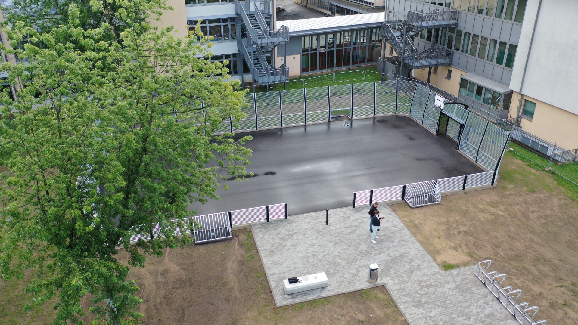 Die Spielfläche wurde komplett neu strukturiert: Reduzierte, klar eingefasste Sandbereiche schaffen aufgeräumte Spielzonen und großzügigere Freiräume. Unter dem Motto „Manege frei!“ präsentieren sich die neuen Spielgeräte im Zirkus-Stil mit einer großen Kletterkombination als Manege und drei Trapez-Schaukeln als zentrale Elemente. Der Bodenaushub und alte Sand wurden vor Ort für Hügelmodellierungen wiederverwendet, ressourcenschonend und nachhaltig. Den Abschluss bildet die neue Ballsportarena an der Goetheschule mit Fußball- und Basketballfeldern als „großes Finale“ der Anlage.