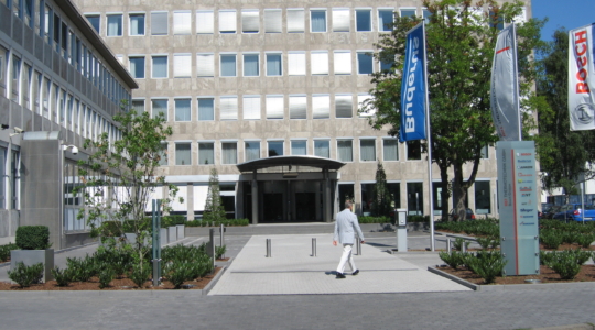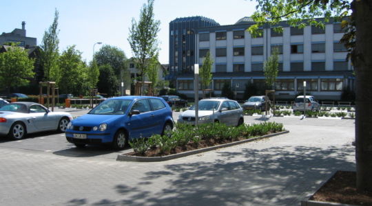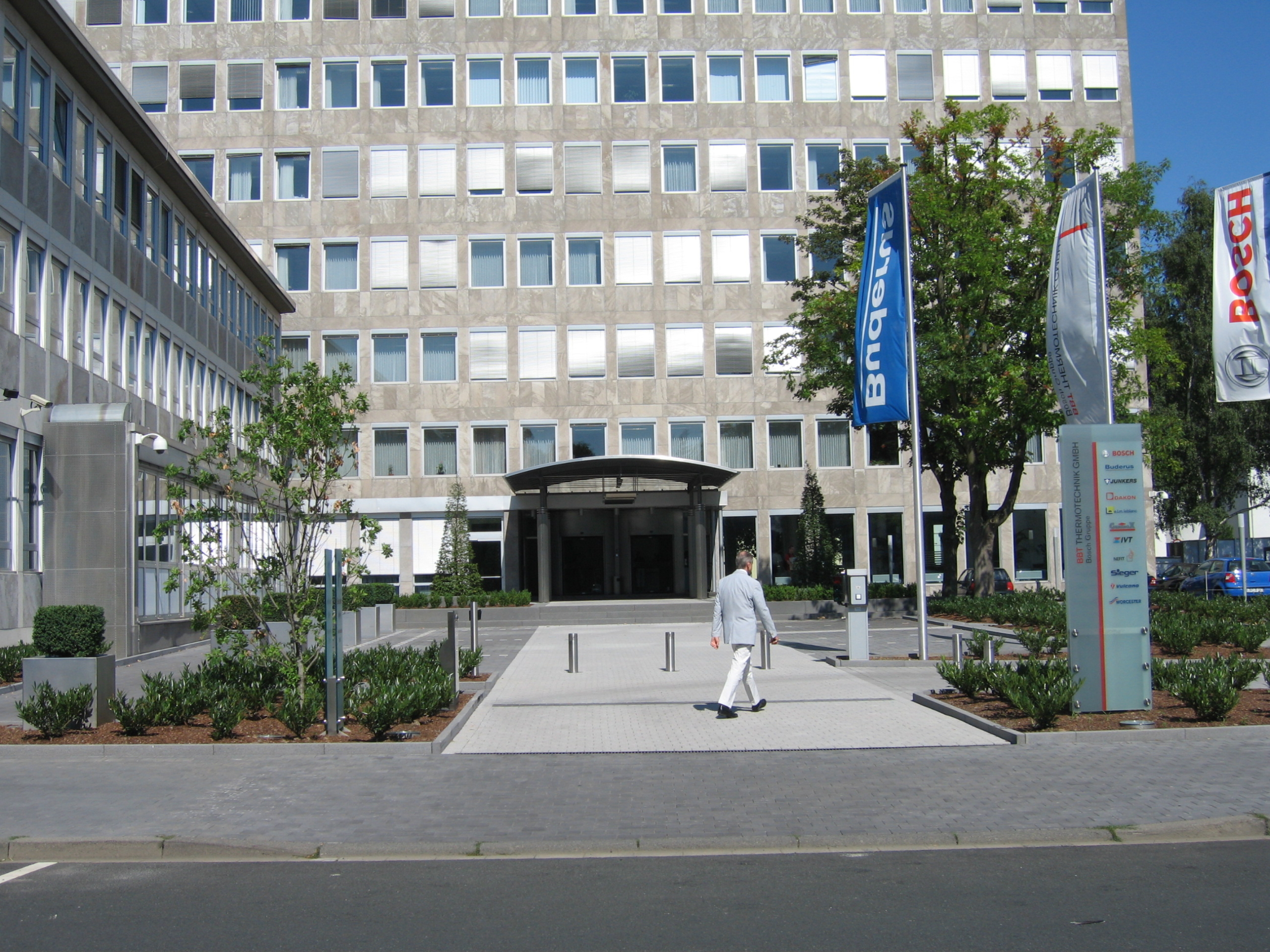 Das Gebäude der BBT Buderus Hauptverwaltung zählt zu den prägnantesten Elementen der Stadtlandschaft Wetzlar. Die Außenanlagen entsprachen allerdings nicht mehr der Wirkungskraft des mit grauen Steinplatten verkleideten Hochhauses. Geplant war die komplette Neustrukturierung und Neugestaltung der Eingangsbereiche, der Parkplätze und der zusammenhangslosen Grünflächen. Anthrazit als dominierender Farbton und eine harmonische Bepflanzung der teils neugeordneten Beete mit ausgewählten Gehölzen lassen den ehemals dispersen Freiraum als Ganzes wirken. Parkplätze und Zufahrten wurden ebenfalls dementsprechend gestaltet. Eine neue Entreesituation ermöglicht den barrierefreien Zugang. Bestimmte Strukturen wurden durch gezielt gesetzte Bodeneinbauleuchten und Mastleuchten betont.